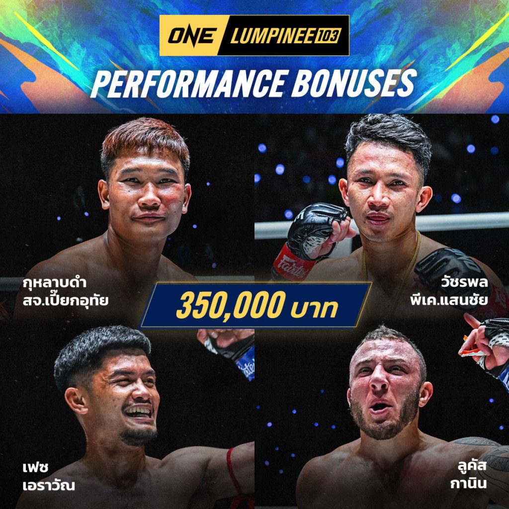 ศึก ONE ลุมพินี 103 กลับมาสร้างความสนุกให้กับแฟนกีฬาต่อสู้แบบถึงใจเช่นเดิม โดยนักสู้ทั้ง 24 ชีวิต พร้อมใจกันโชว์ผลงานยอดเยี่ยมเพื่อชิงแต้มชัยมาครอง เมื่อวันศุกร์ที่ 4 เม.ย.ที่ผ่านมา ณ สนามมวยเวทีลุมพินี (รามอินทรา)
