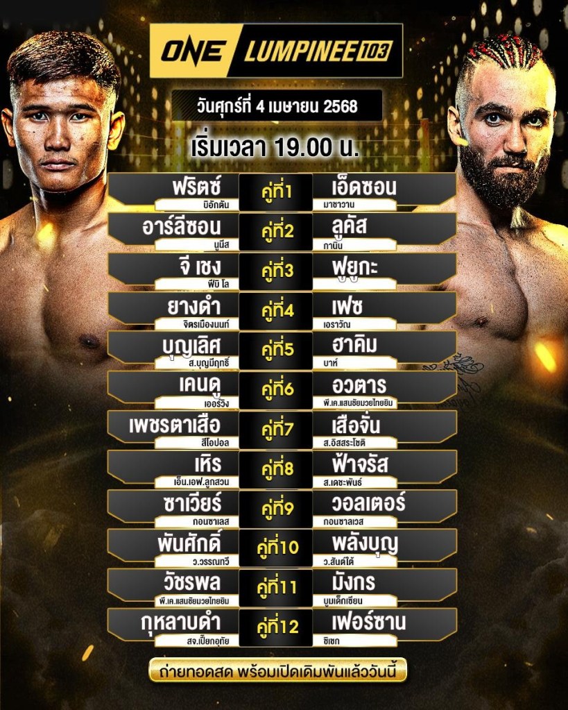 สรุปผลการแข่งขันทุกคู่ ONE ลุมพินี 103