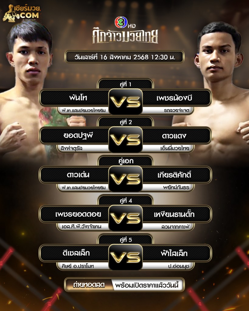 ศึกเจ้ามวยไทย วันที่ 16 สิงหาคม 2568