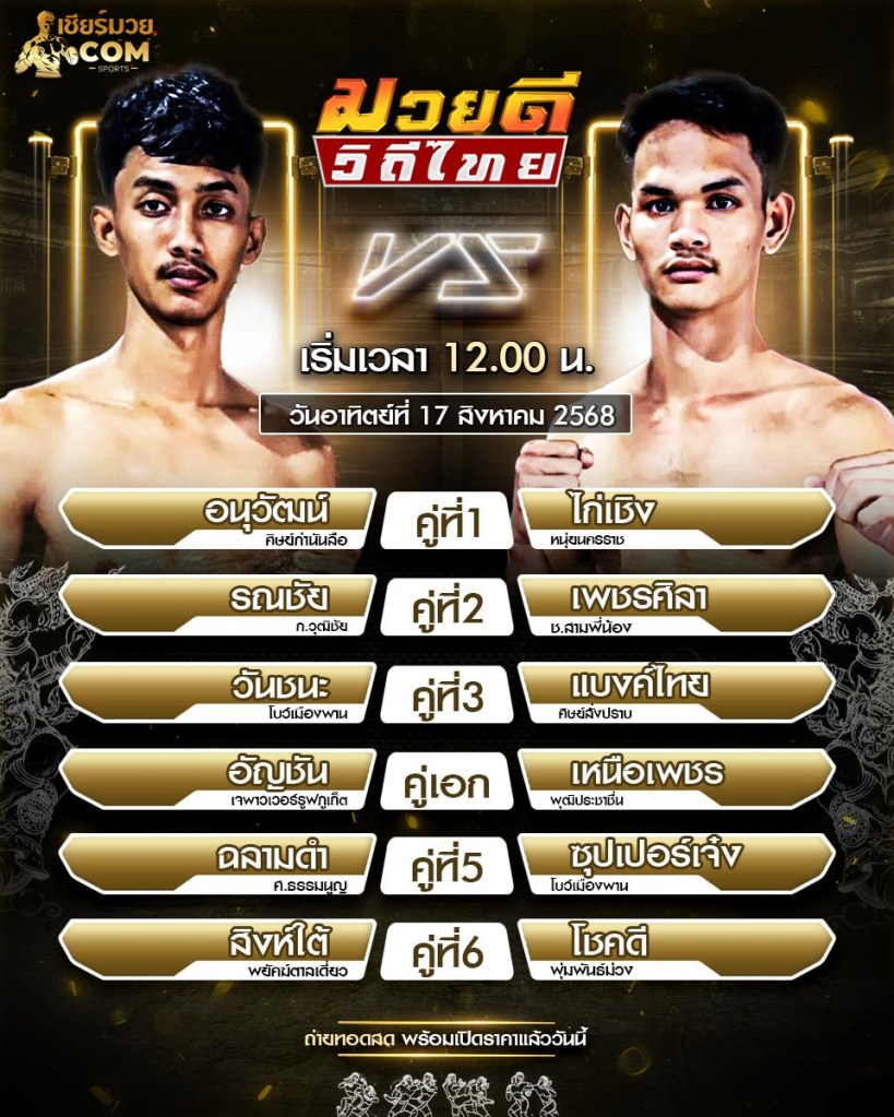 ศึกมวยดีวิถีไทย วันที่ 17 สิงหาคม 2568