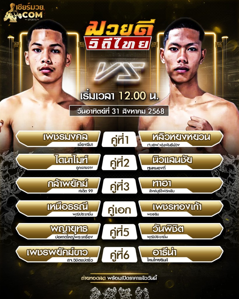 ศึกมวยดีวิถีไทย วันที่ 31 สิงหาคม 2568