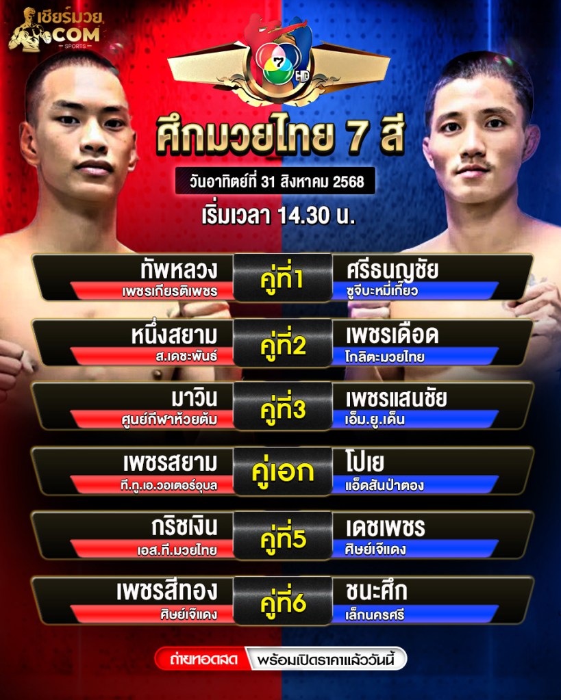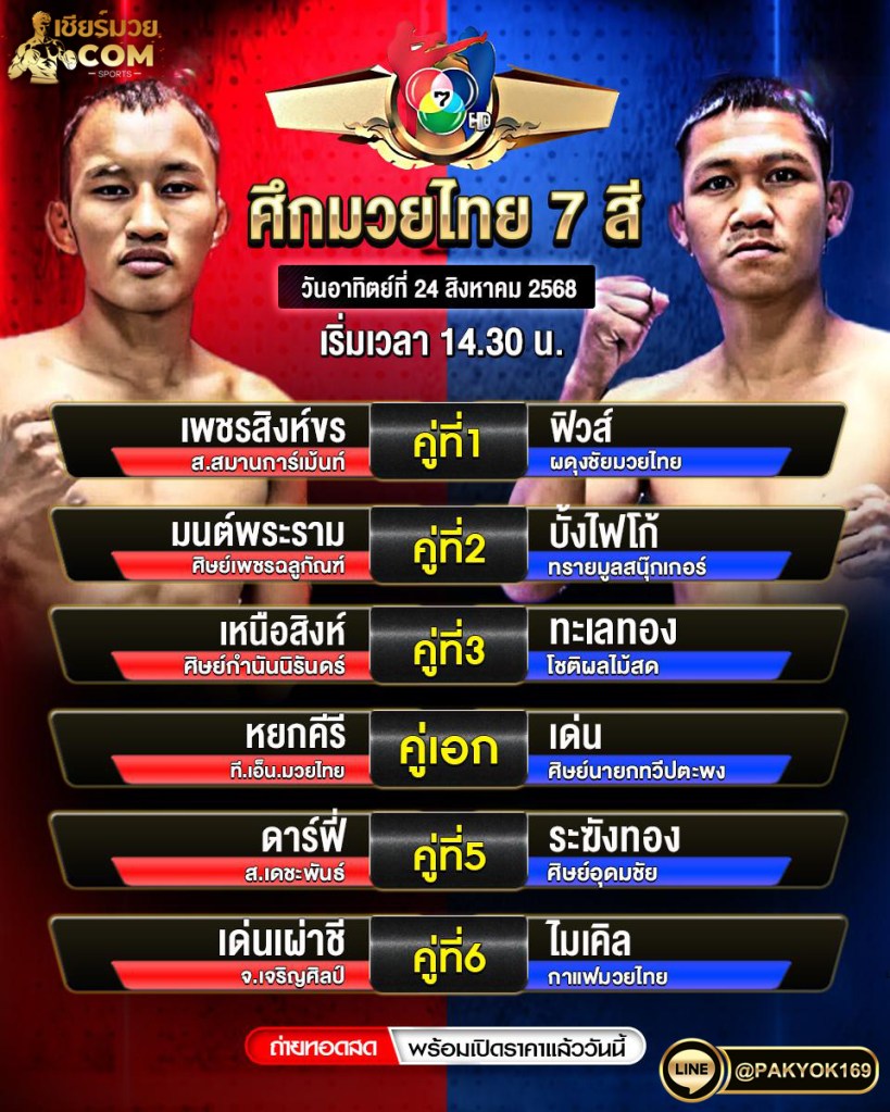 มวยไทย 7 สี วันที่ 24 สิงหาคม 2568